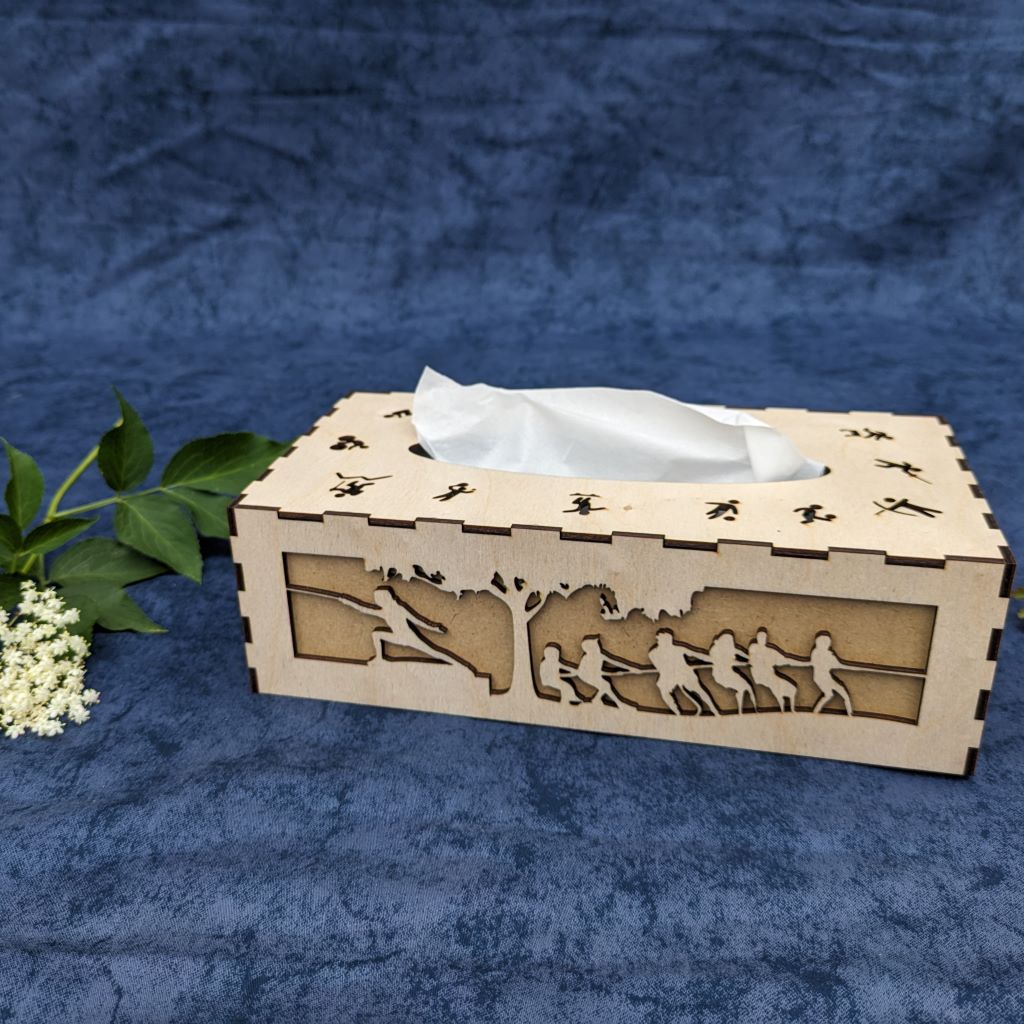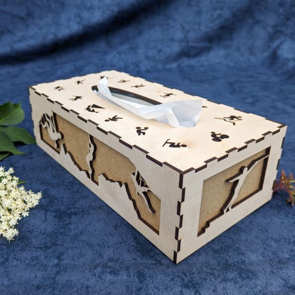 Oui bien sûr, quand vos amis auront vu vos boites chez vous, ils voudront les mêmes ! C’est bien normal et ce n’est pas nous qui allons dire le contraire. Nous avons jusqu’à aujourd’hui un seul modèle de boite à mouchoir en bois avec des motifs représentant des villages et des arbres. Voici de quoi offrir une boite différente, cette fois sur le thème du sports: escrime, escalade, tir à la corde. En parlant de cadeau… avez vous pensé à nous idées de cadeaux de sous verres en bois ?